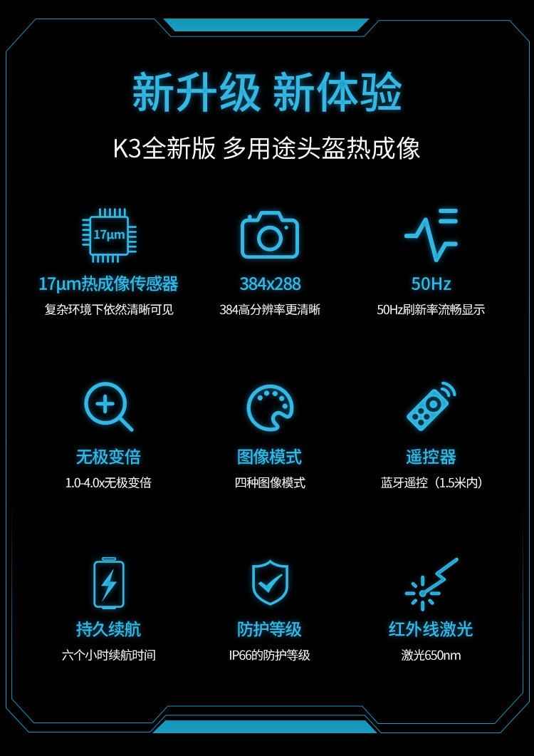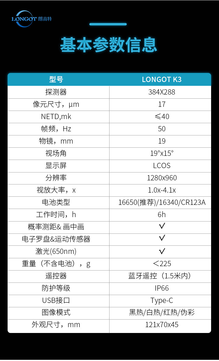 跨境外贸 朗高特K3 可头戴可手持可热瞄十字续航多功能热像仪