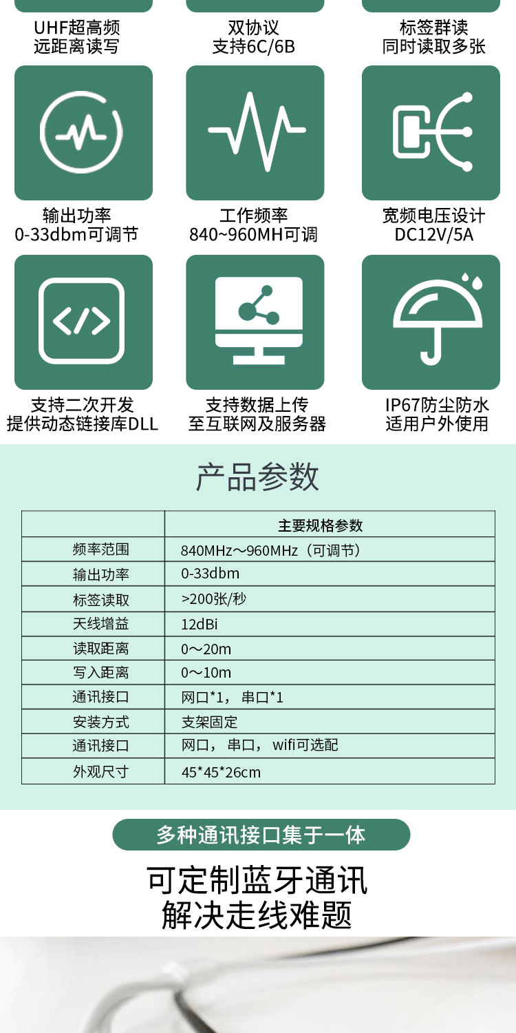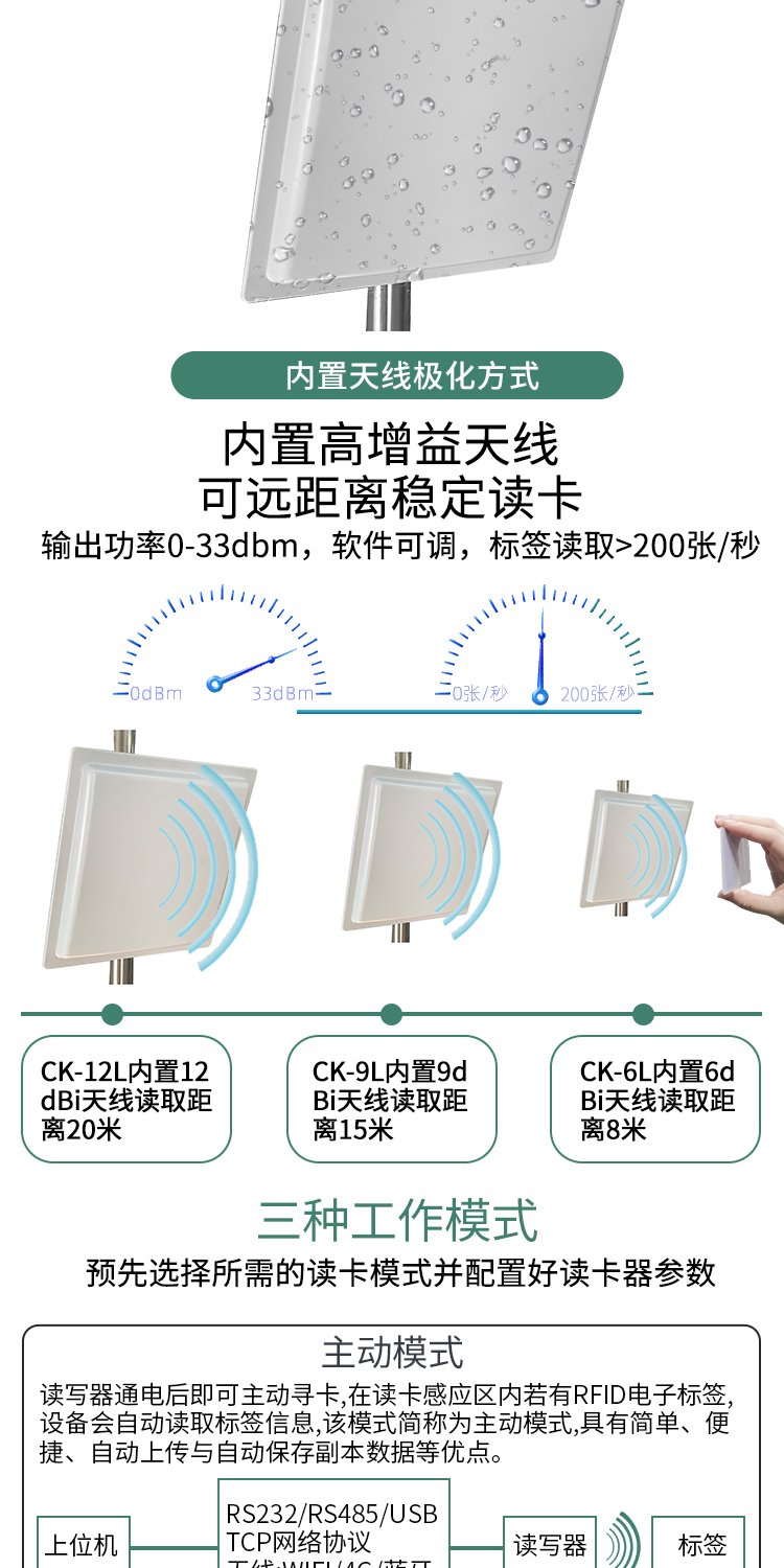 超高频RFID读写一体机12dBi定向停车电瓶车管理rfid远距离读卡器