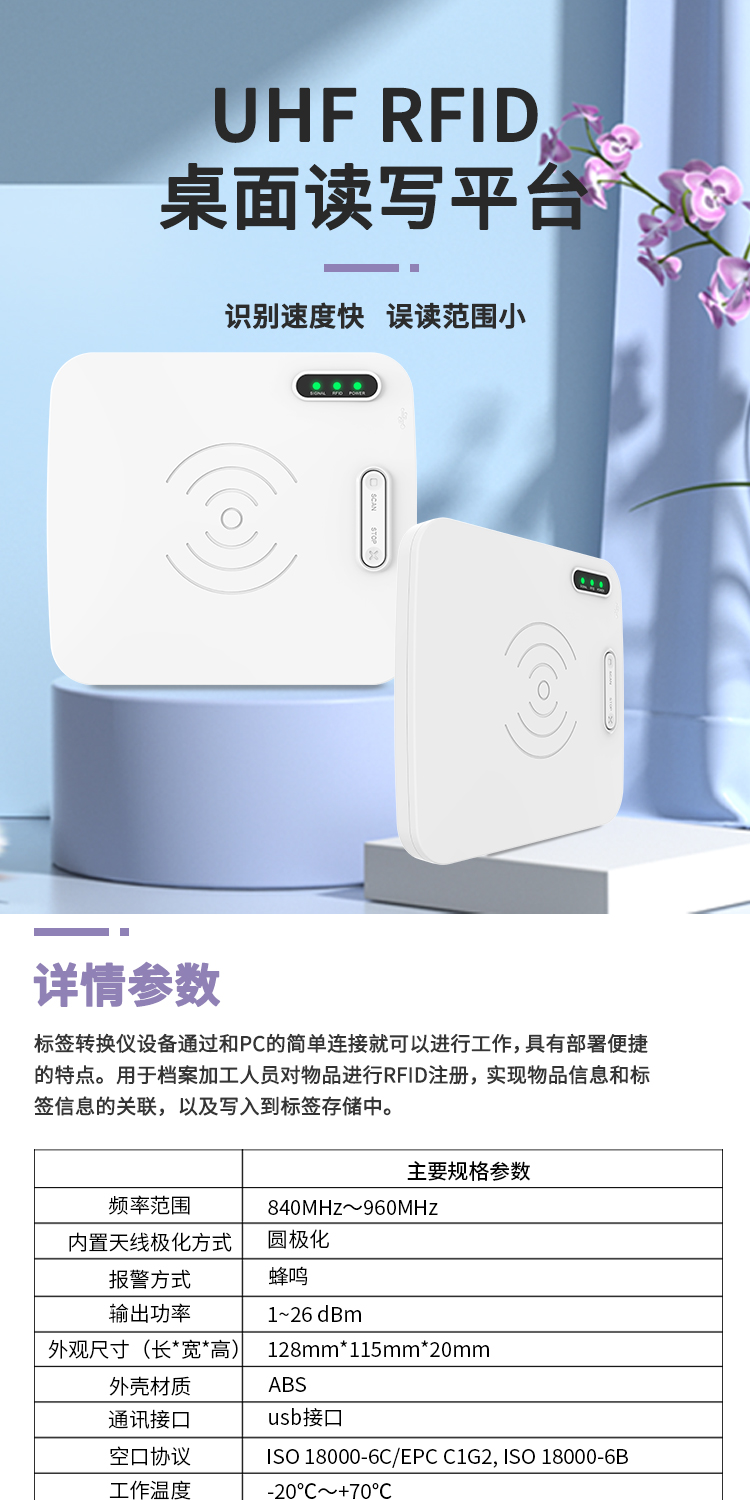 rfid读写器超高频桌面式发卡器电子标签读卡器无源射频识别写卡器