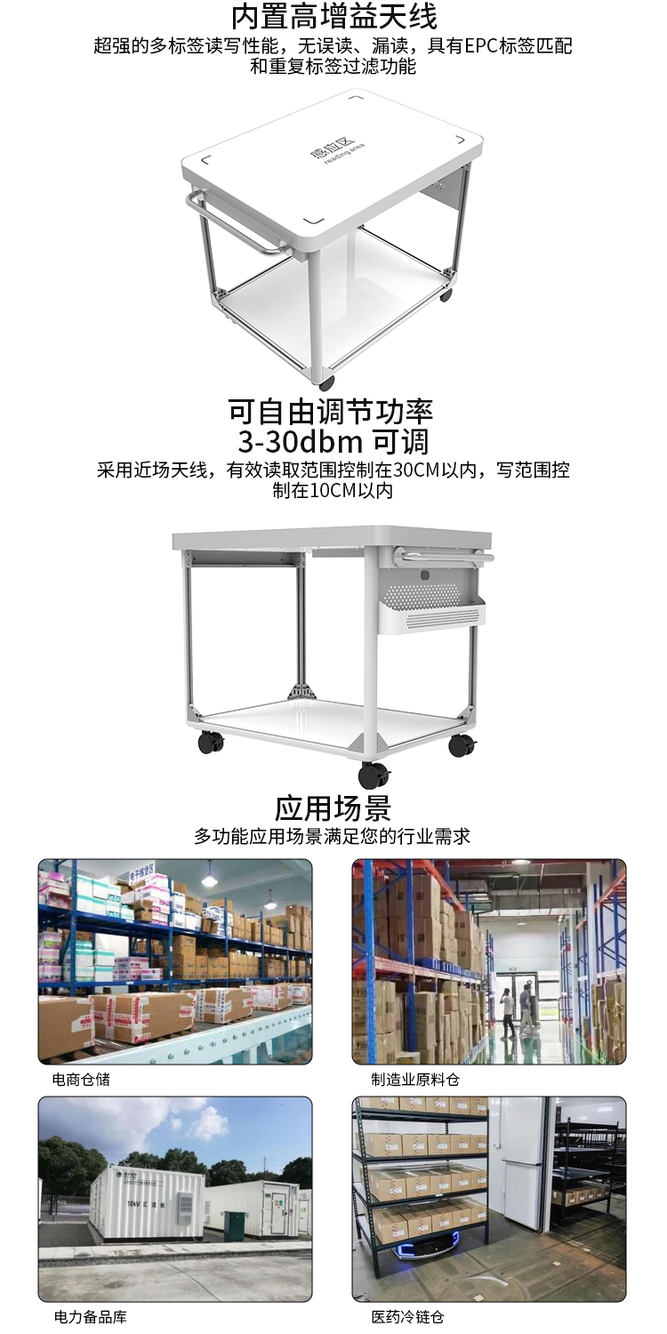 RFID多功能智能盘点车图书档案标签录入绑定台批量盘点移动式推车