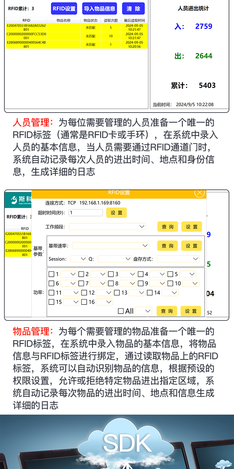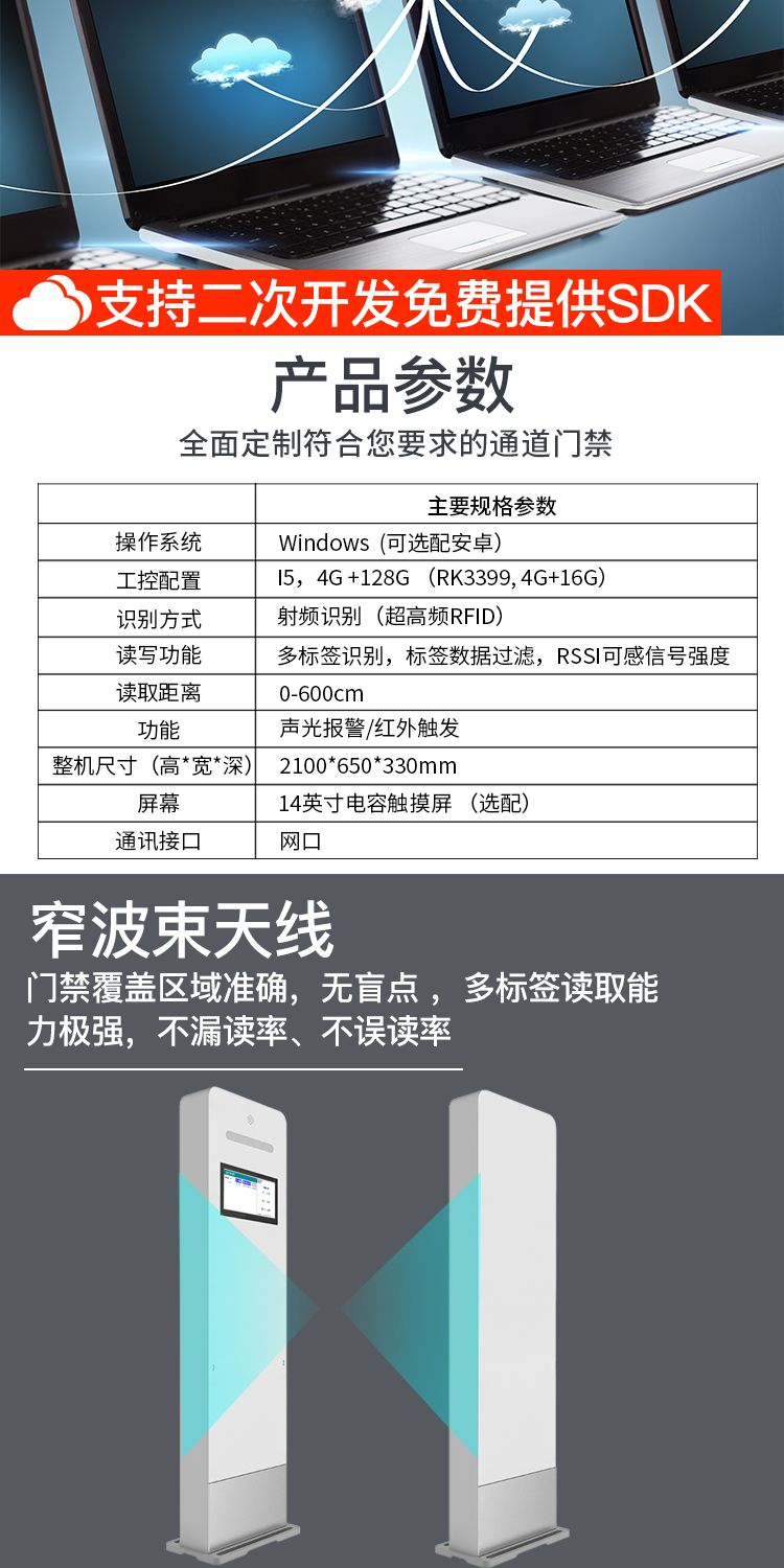 RFID通道门仓库物资管理安全防盗门仓储资产盘点人员进出管理门禁