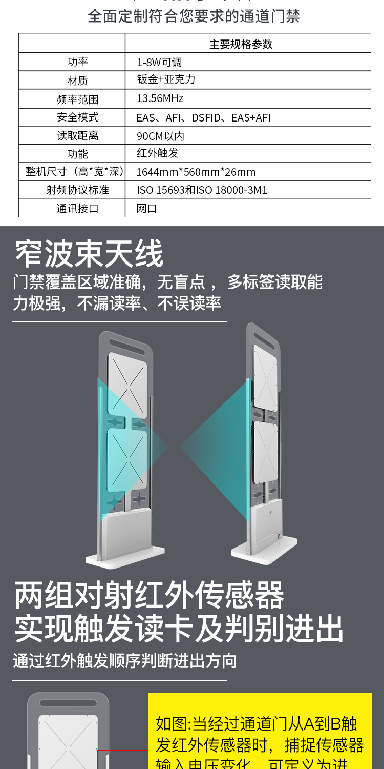 高频RFID通道门禁13.56MHz智能档案文件图书管理门禁系统防盗门
