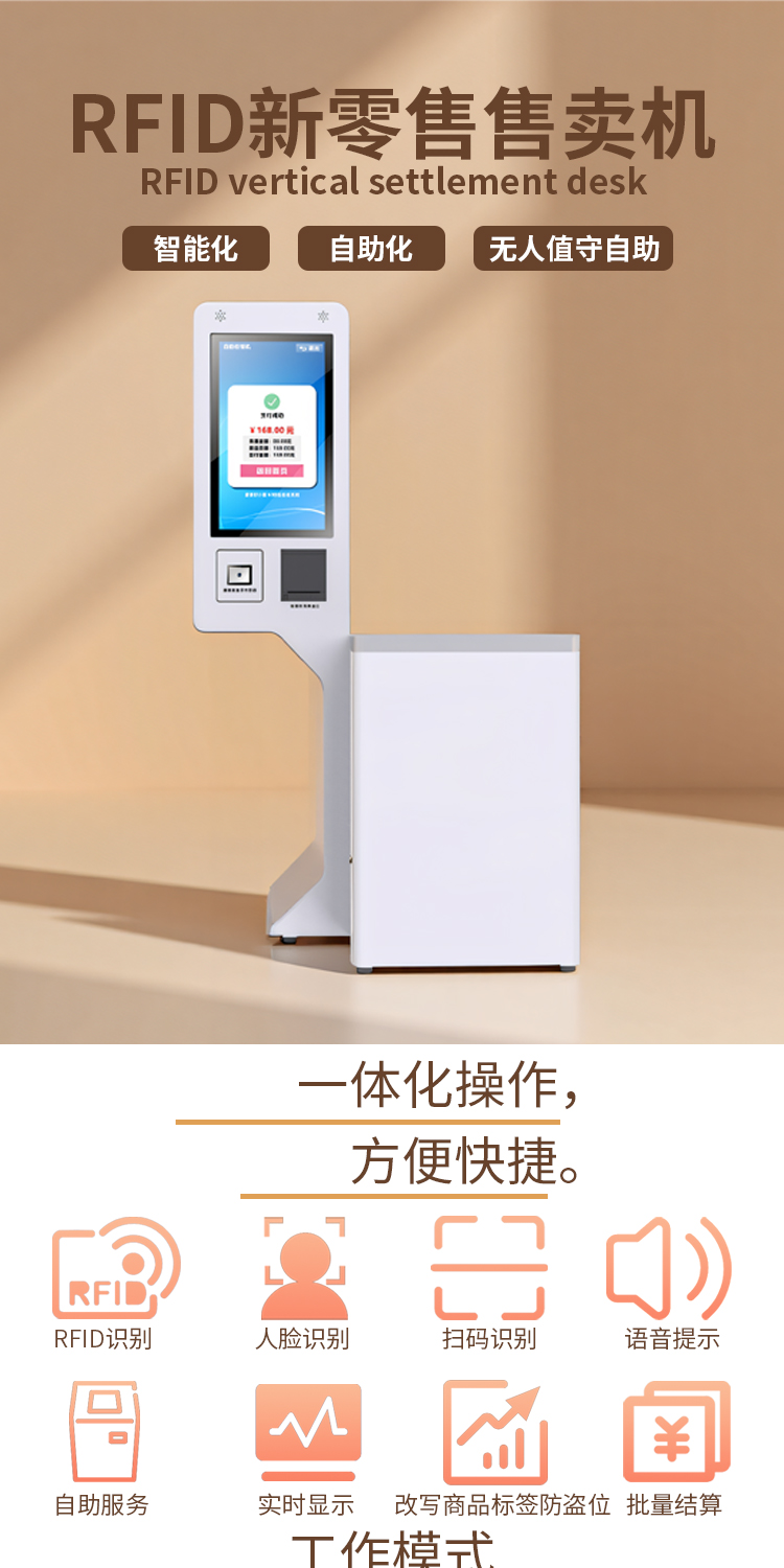 无人零售自助收银终端RFID自助收银机多支付接口触摸屏自助收款机
