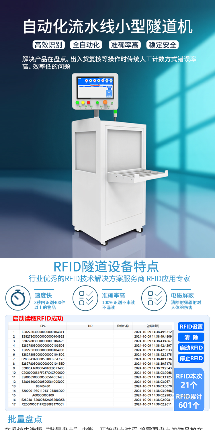 RFID隧道式盘点通道机高效批量盘点自动化产线传送机小型隧道机