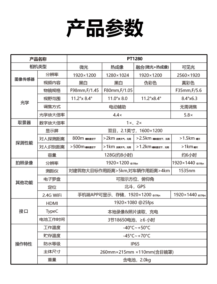 PT1280: 微光/热成像/融合(微光+热成像)/可见光