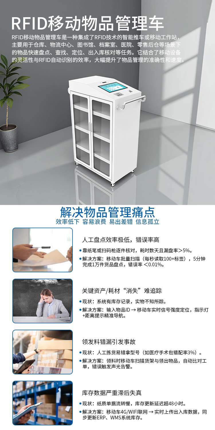 RFID移动物品管理车多科室诊药品器械智能清点车智能巡检耗材柜