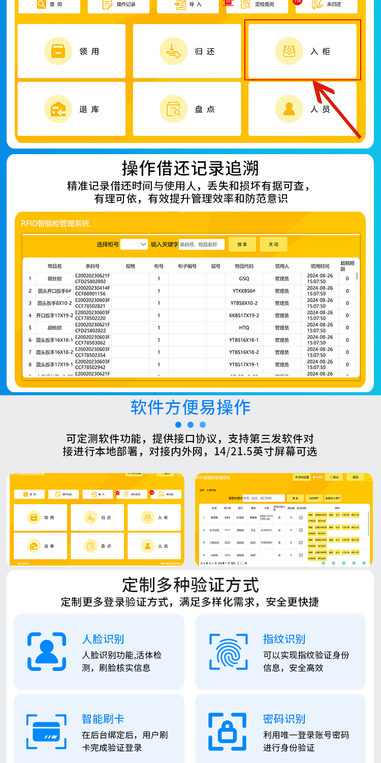 RFID智能工具柜无人值守自动盘点工具管理柜大型车间智能存储设备