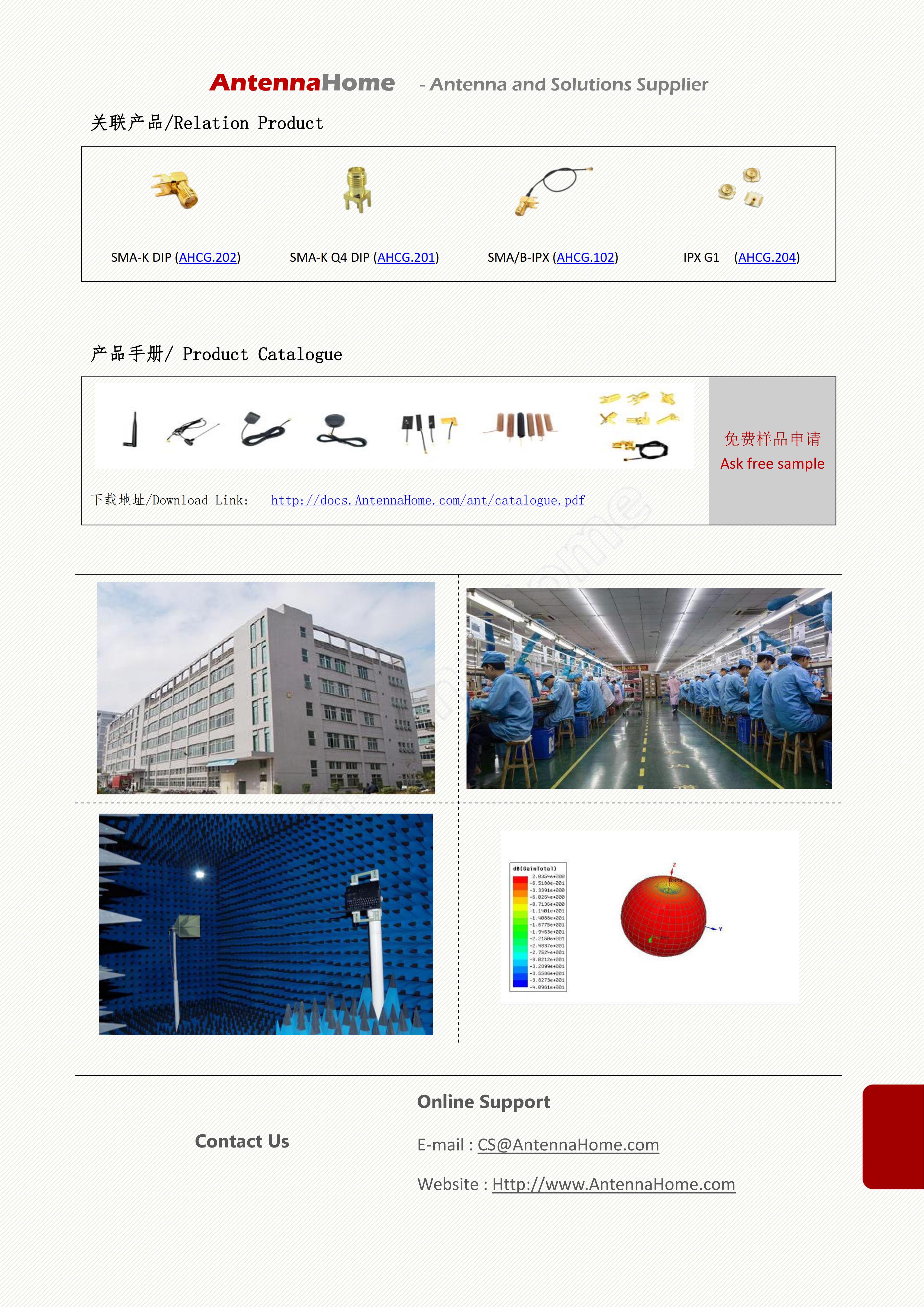 Datasheet : http://docs.antennahome.com/ant/: AHCG.101RMMCXJWL150.pdf