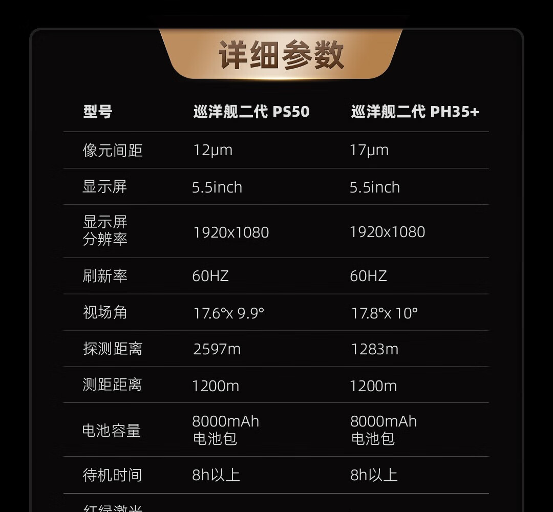 巡洋舰二代PH35+25年新款一体双激光1200米测距640探测器35大镜头