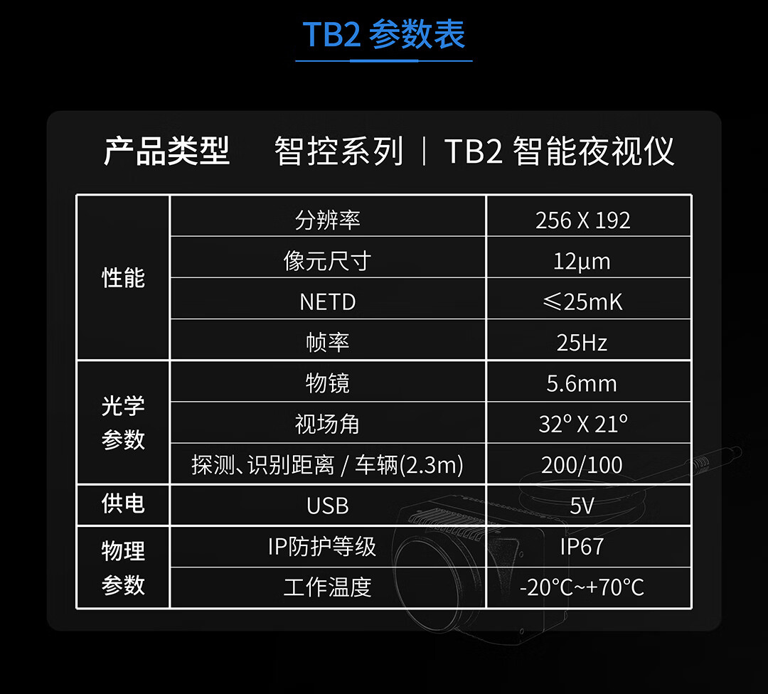 英睿热成像TB2行车记录仪高清汽车夜视系统摄像头夜间防撞