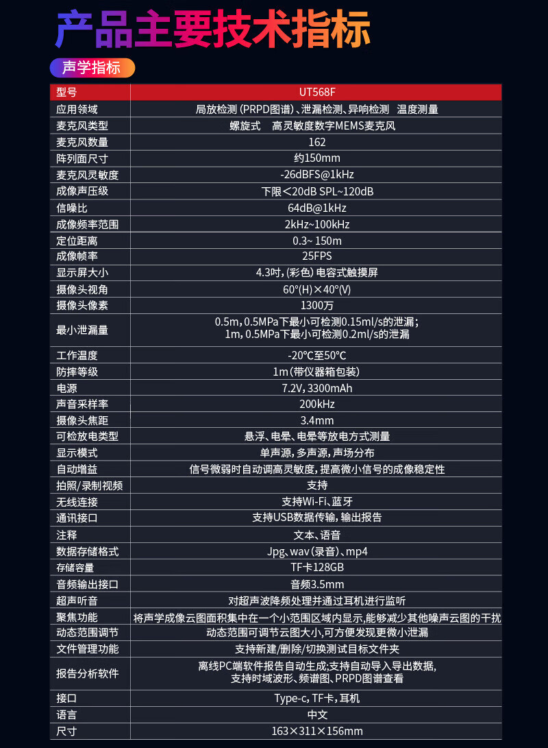 优利德UT568F声学成像仪局部放电 气体泄漏 声波声源红外热成像仪