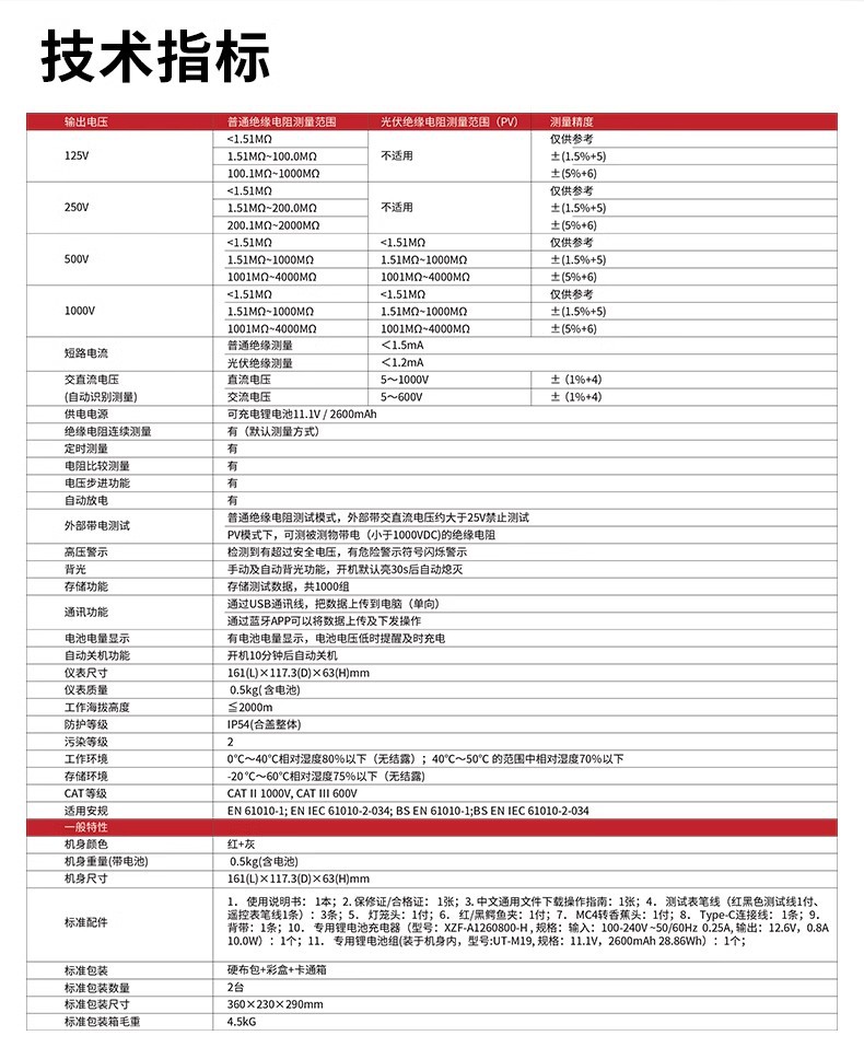 优利德UT503PV光伏绝缘电阻测试仪高压兆欧表智能电工摇表定时