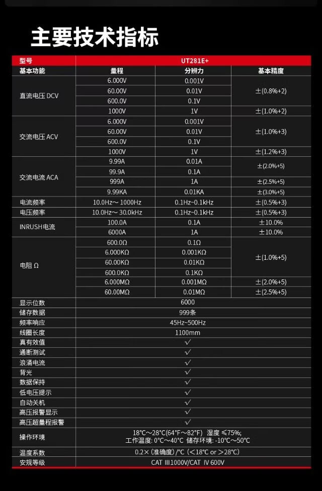 UT281E+柔性钳形电流表1米长线圈大口径钳形万用表10000A
