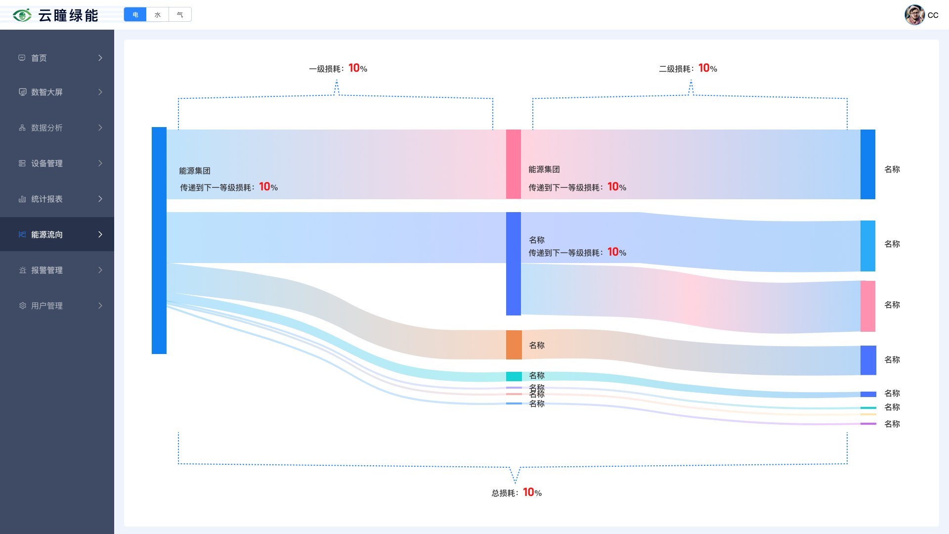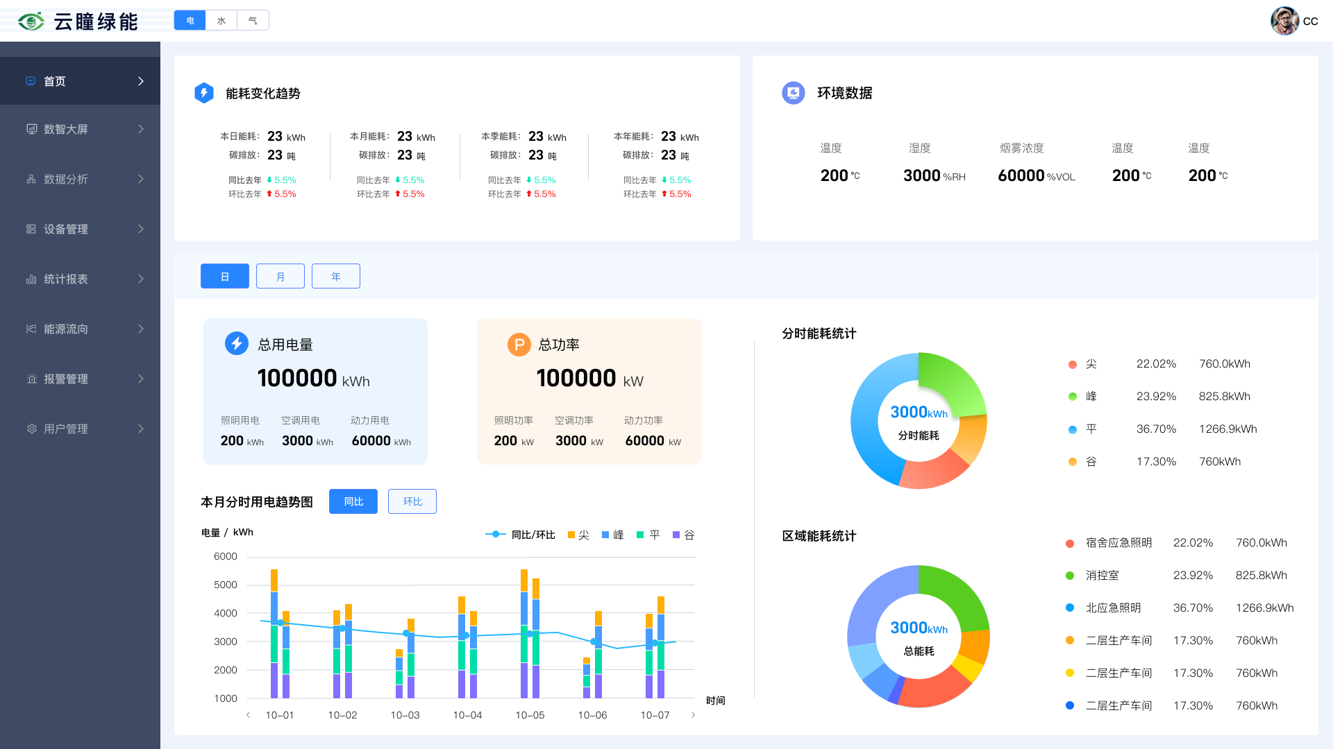 平台支持水、电、气、热、冷全品类能源数据的毫秒级采集、清洗与融合,通过 AI 算法实现能耗异常预警、负荷预测、能效分析与优化建议;配套电力管控系统,实现配电监控、负荷调节、故障快速定位与安全防护,保障电力供应稳定可靠。