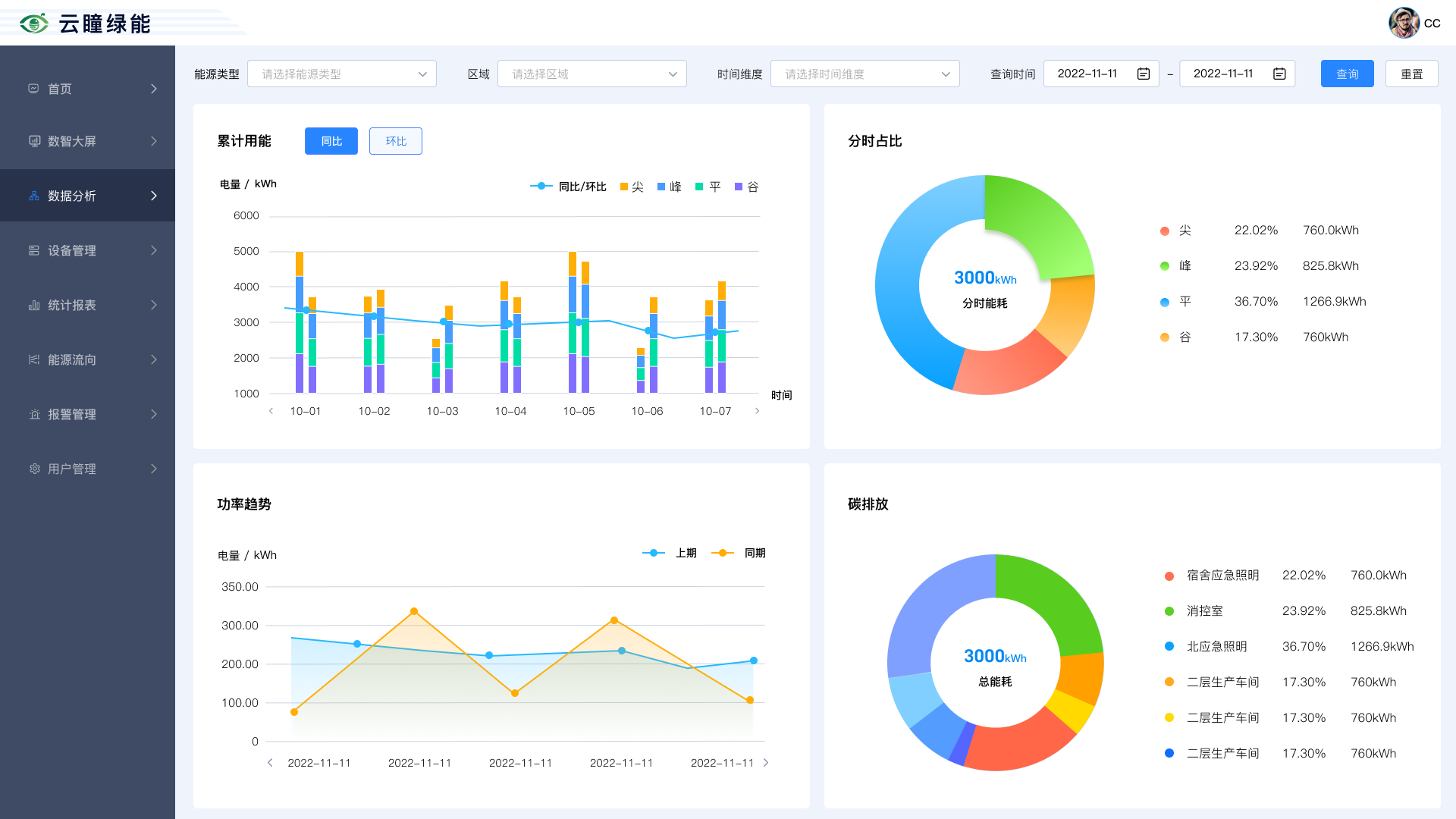 云瞳绿能企业能源管理 AI 能耗监测平台,以AI 智能分析为核心,以全链路数据采集系统为基础,以精细化电力管控为抓手,构建企业能源全生命周期管理闭环。